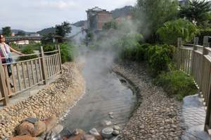 湘南热都—汝城温泉属高温热水型温泉,距飞水寨景区大门口6公里,温泉文化园占地26亩,园内的温泉眼是汝城温泉方圆3平方公里内流量最大,水温最高的天然泉眼,温泉如一条热龙在河边翻腾,热浪滚滚… 温泉具有“水温高、流量大、水质好、含氡高”四大特点,一般91.5度,最高98度,温泉水中含30多种对人体有益的微量元素,特